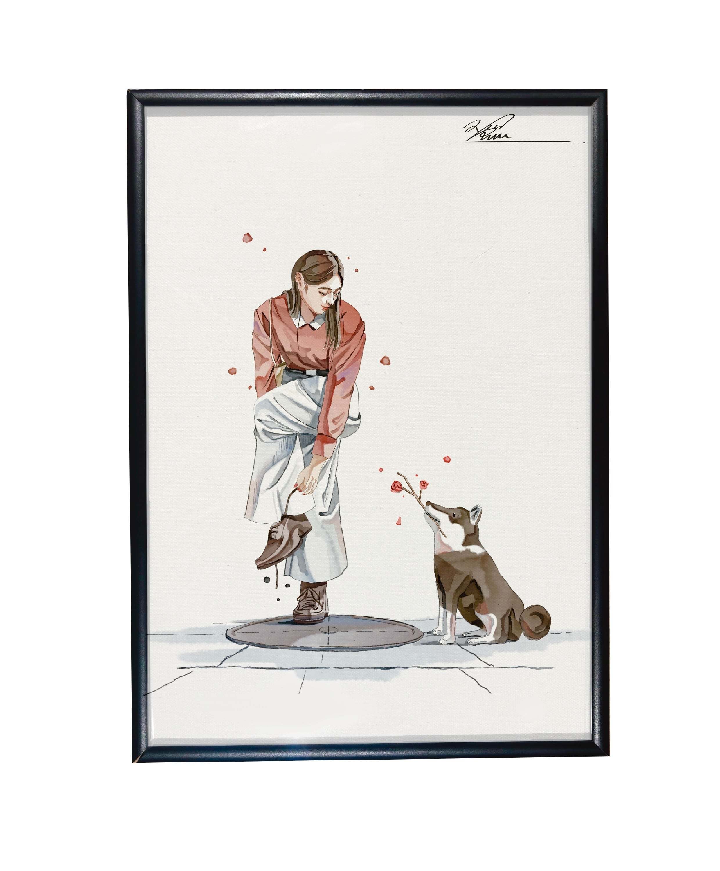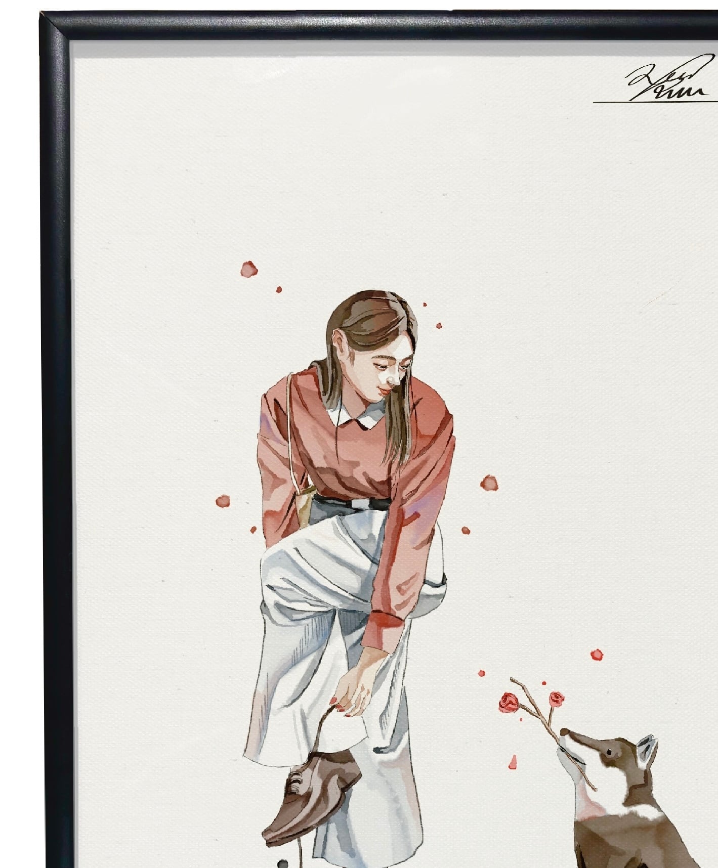 A4~A2サイズのイラストは、どんなインテリアにも合う美しい額装でお届けします。